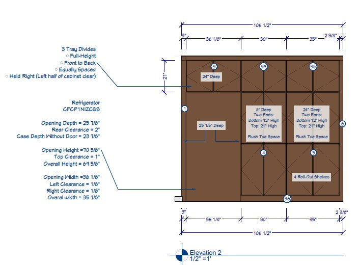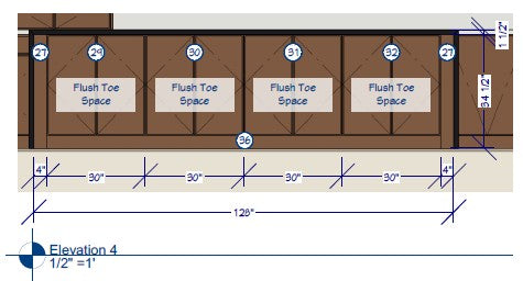 - 1/8” is acceptable in cabinet width differences due to different finished end material thicknesses