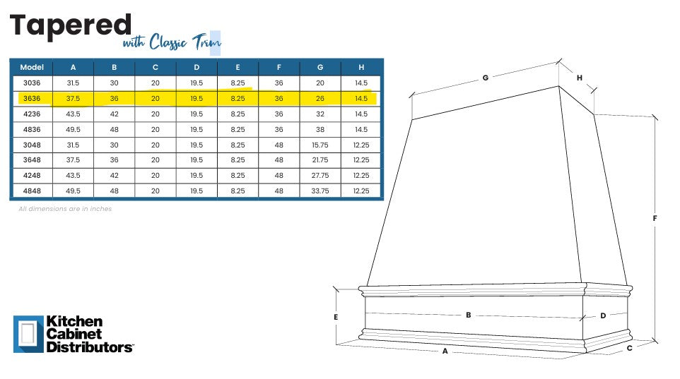 - Brooklyn Fawn Tapered Hood Classic Trim - 36" W x 36" H