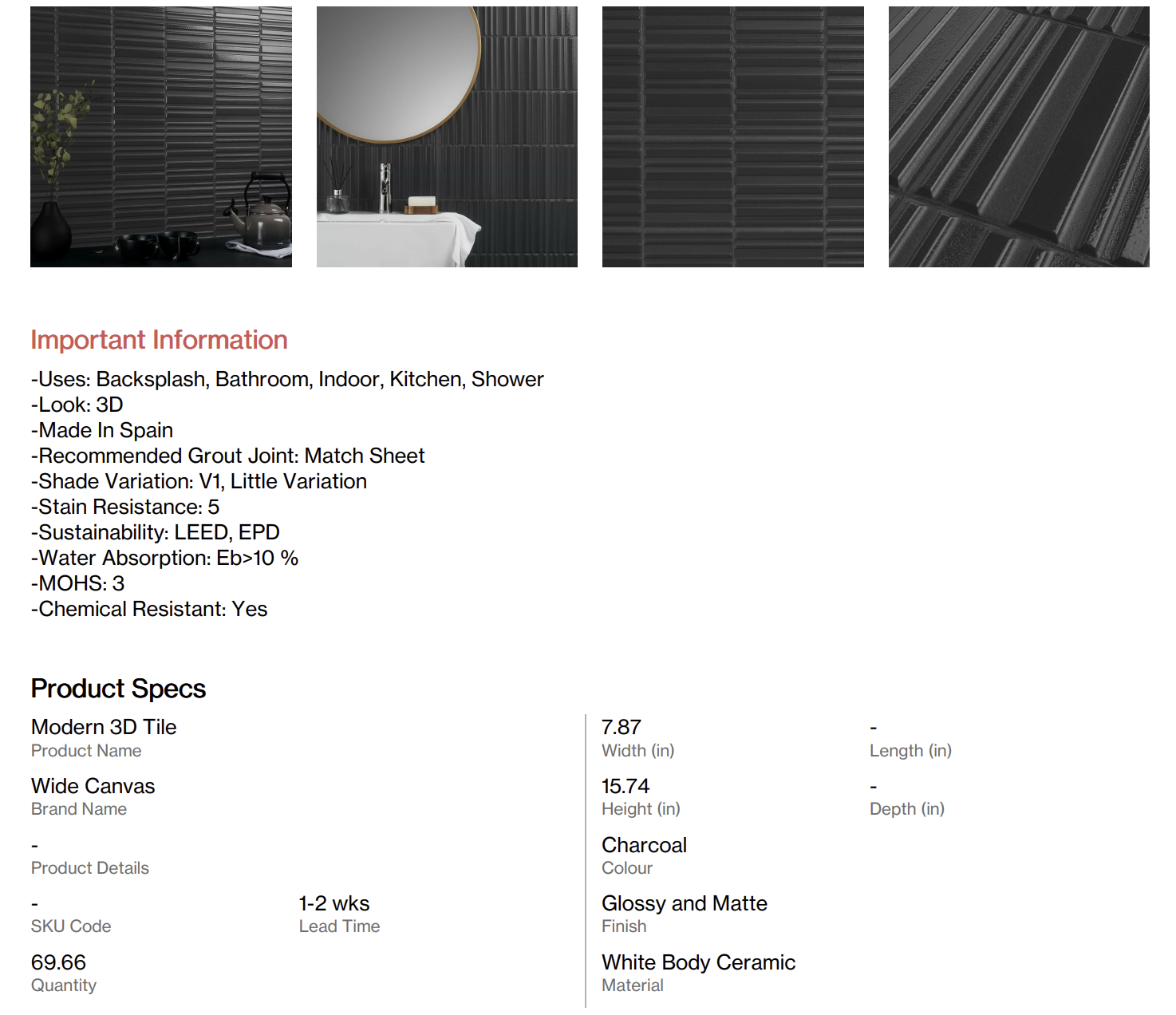 Kitchen backsplash tile per the attached photos and specifications.